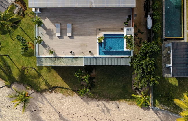 Luxury beachfront villa with private pool and cozy Pavillon with private jacuzzi on rooftop terrace